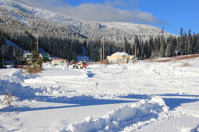 The guys have been farming snow from the parking lot. They did that last year, and it made a big difference to the base area early season,